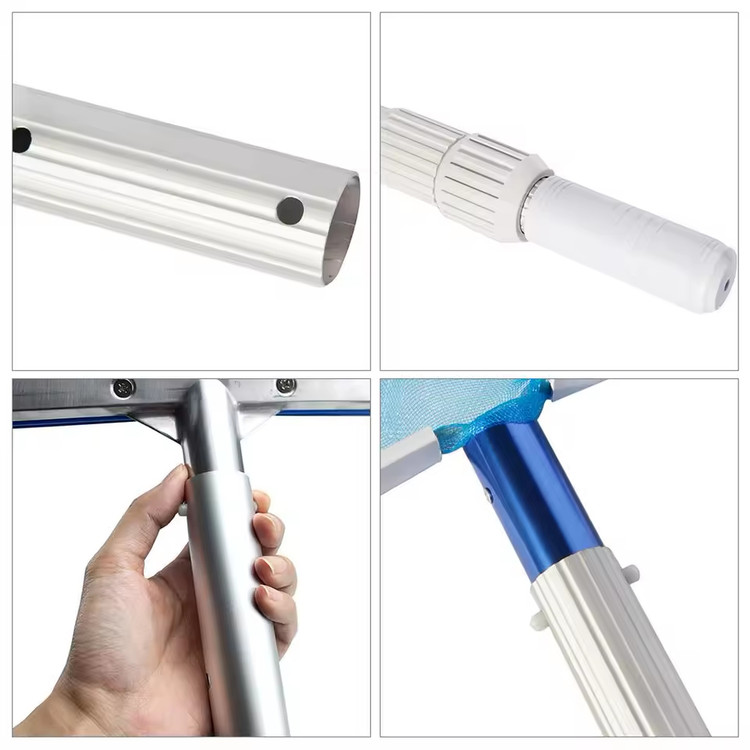 برای داشتن استخری پاک و تمیز باید همواره از آن نگهداری کنید و همیشه دیواره های استخر شما برس زنی و فرچه کشی شود و تمامی برگ و حشرات معلق بر روی آب باید حذف شود ، برای این کار شما نیاز به انواع مختلف برس و فرچه های مخصوص استخر و برگ گیر استخر دارید و برای جارو زدن استخر نیز باید از سرجارو استفاده کنید . این موارد به تنهایی مشکل گشای کار ما نیست در کنار اینها باید از دسته تلسکوپی استفاده کرد که قابلیت اتصال به تمام این موارد را دارد و با خرید یک دسته تلسکوپی شما میتوانید تمام این موارد را به آن متصل کرده و به راحتی کار نظافت استخر را انجام دهید .